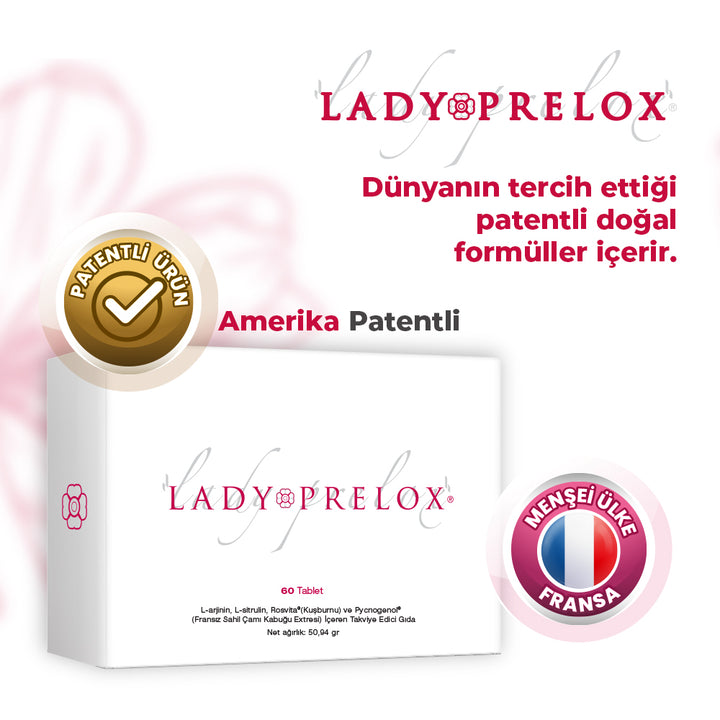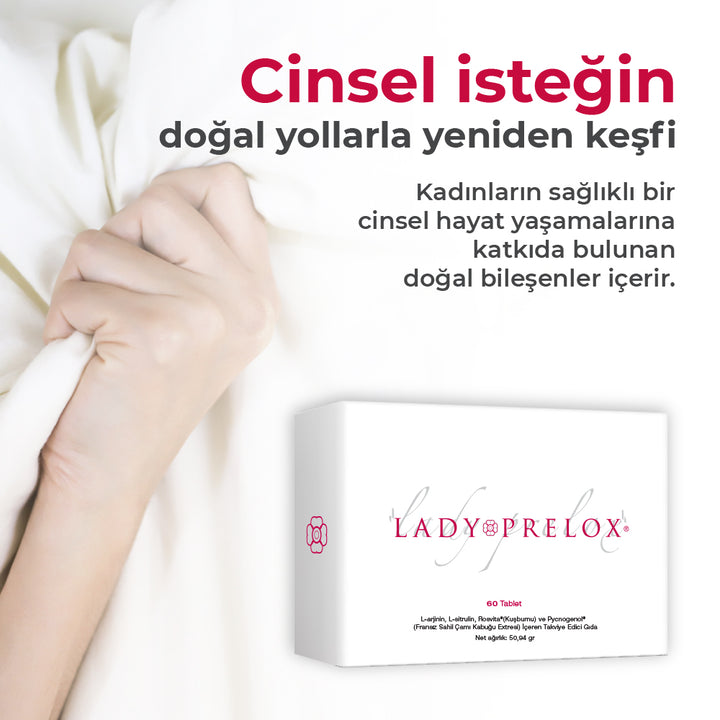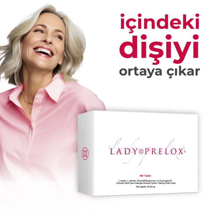 Lady Prelox®, kadınların sağlıklı bir cinsel hayat yaşamalarına, aynı zamanda menopoz dönemi, öncesi ve sonrası görülen menopozal semptomların azaltılmasına katkıda bulunan vitamin ve mineraller içeren bir gıda takviyesidir.