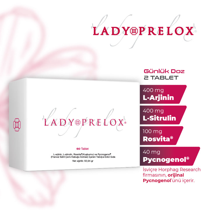 Lady Prelox®'un içerisinde L-Arjinin, L-Sitrulin, Rosvita ve Pycnogenol bulunmaktadır.